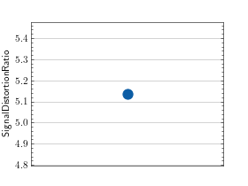 >>> # Example plotting a single value >>> import torch >>> from torchmetrics.audio import SignalDistortionRatio >>> metric = SignalDistortionRatio() >>> metric.update(torch.rand(8000), torch.rand(8000)) >>> fig_, ax_ = metric.plot()