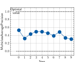 >>> # Example plotting multiple values >>> import torch >>> from torchmetrics.classification import MulticlassAveragePrecision >>> metric = MulticlassAveragePrecision(num_classes=3) >>> values = [ ] >>> for _ in range(10): ... values.append(metric(torch.randn(20, 3), torch.randint(3, (20,)))) >>> fig_, ax_ = metric.plot(values)