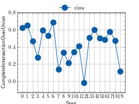 • ciou/cl_{cl}: (Tensor), if argument class_metrics=True